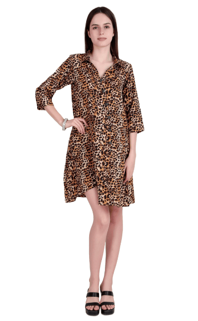 Unleash your wild side with this stylish women’s leopard print shirt dress. Crafted with soft, breathable fabric, this dress features a relaxed A-line fit, a classic shirt collar, and chic 3/4 sleeves. The front button-down design adds both functionality and flair, making it easy to wear and layer. Whether you're heading out for a casual day or planning a vacation look, this animal print dress is sure to turn heads. Style it with heels for a glam look or sneakers for a laid-back vibe. 🐆 Bold Leopard Print – Make a fashion statement with this all-over animal print that’s fierce and stylish. 👗 Relaxed A-Line Fit – Flowy silhouette flatters every body type and provides comfort all day. 👚 Shirt Collar Design – Classic shirt collar adds a structured touch to the casual look. 💫 3/4 Sleeves – Designed with three-quarter sleeves for a balanced and elegant appearance. 🌟 Button-Down Front – Front button closure for ease of wear and trendy detailing. 🏖️ Versatile Style – Ideal for brunch, travel, vacations, or casual outings. Pair with sandals or heels!